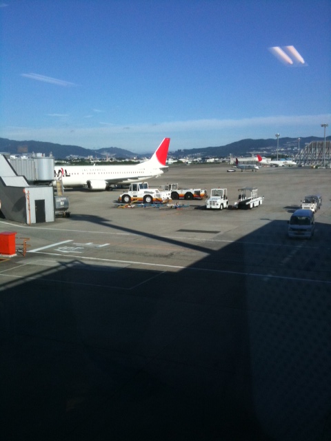 帰りは秋田発伊丹行き18時30分のJAL便に搭乗しました。この時期は積乱雲が多いため、搭乗前から嫌な予感がしていたのですが、予想は的中。ルート変更+伊丹空港混雑のため大阪上空を旋回で約20分遅れでの到着となりました。しかし、機体が小さい割にはほとんど揺れなかったので、快適なフライトでした。