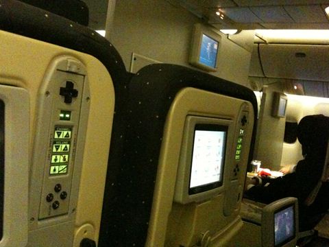 AF277便の使用機材はB777‐300。3-4-3シートでまあまあ広いのですが、フライトは13時間です。しかも、到着は早朝4時半なので、機内食を食べた後は取りあえず睡眠です。