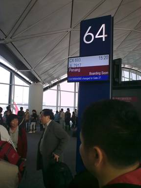 1時間ほどして、ペナン行き15:20発のCX693便にボーディング。約3時間半のフライトでペナンに到着。
